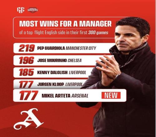 2025年10月4日,阿森纳在酋长球场2:0拿下西汉姆——这场球正好是阿尔特塔执教阿森纳的第300场,他把第177场胜利记在账上;同一节点的胜场数与克洛普持平,而“英格兰顶级联赛主帅前300场胜场”这张榜上,前面还有瓜迪奥拉219、穆里尼奥196、达格利什185这些参照数字。
